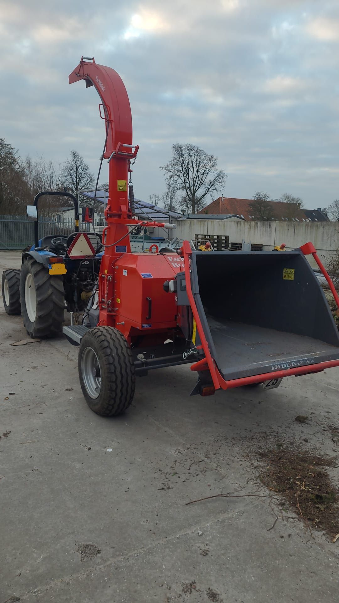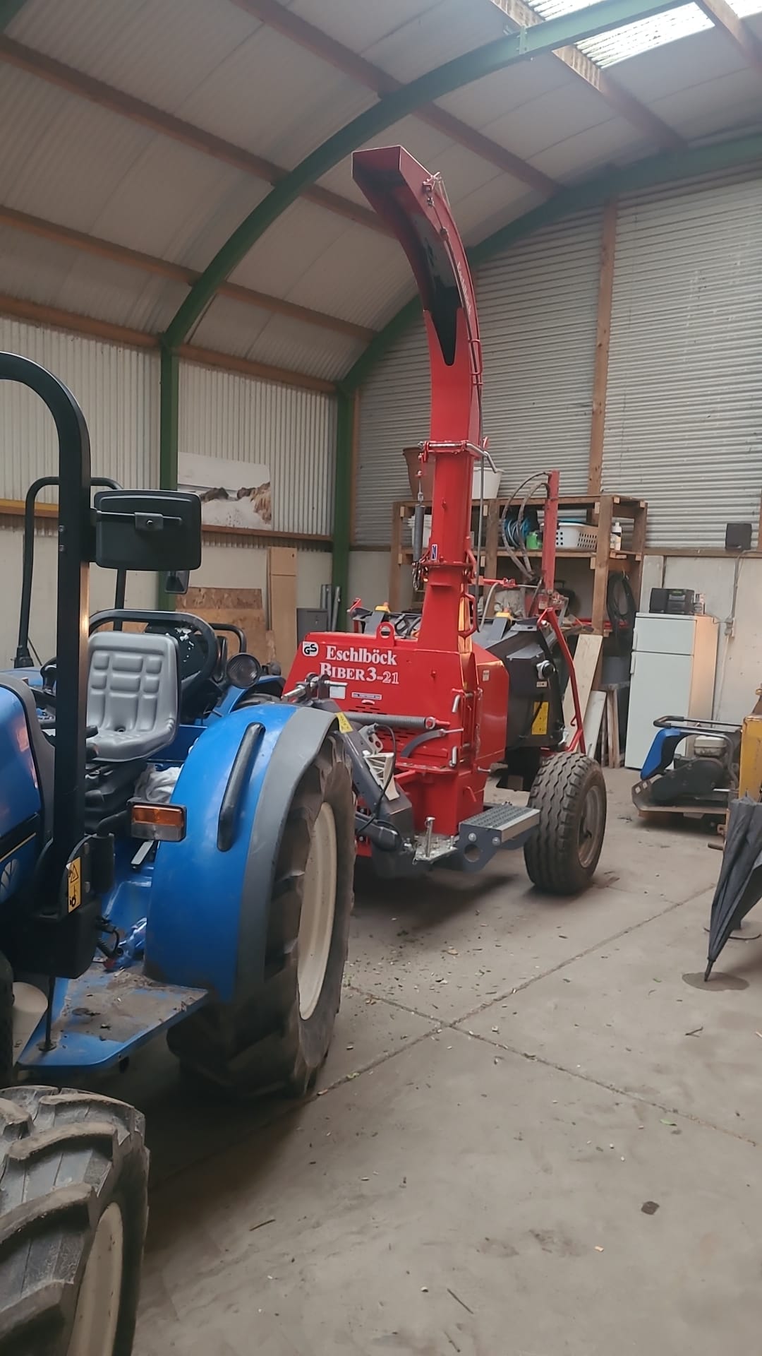 Used Eschlböck Biber 3-21 Woodchipper travelling axis from 2019 for sale. This disc chipper has Only # 79 hour and has a drive via the Tractor power take-off shaft, is safe on the road with drive axle. The Max. wood diameter: 21 cm, with an Infeed width: 24 cm and a Nr. of Knives: 3 pieces. The Chipping length: 1-3 cm and Secondary shredding comb for precise finely chopped material. The Capacity hydraulic tank: 35 litres and the PTO power required: from 40 to 110 HP. The PTO speed: 540-1000 rpm and it has a Weight: # 1350 kg. The Transport position: LxWxH: 3.75 x 1.92 x 2.45m and the Working position: LxWxH: 3.75 x 1.92 x 3.25.